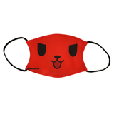 Red Devil Dog face mask featuring a cute cartoon animal expression in vibrant red